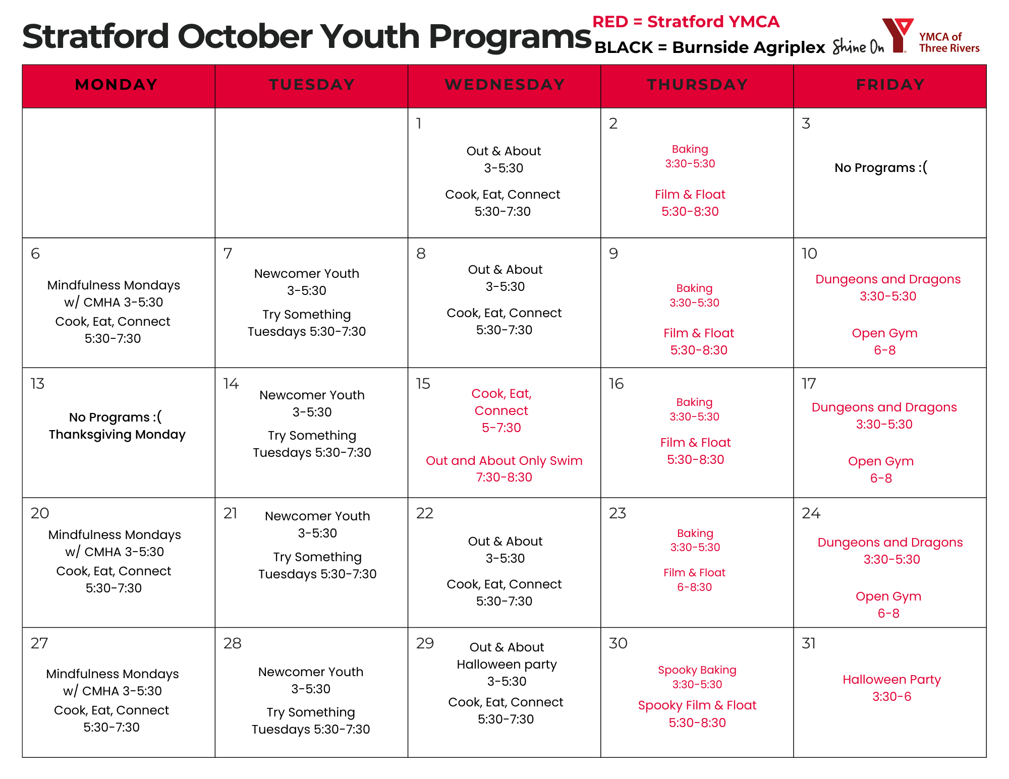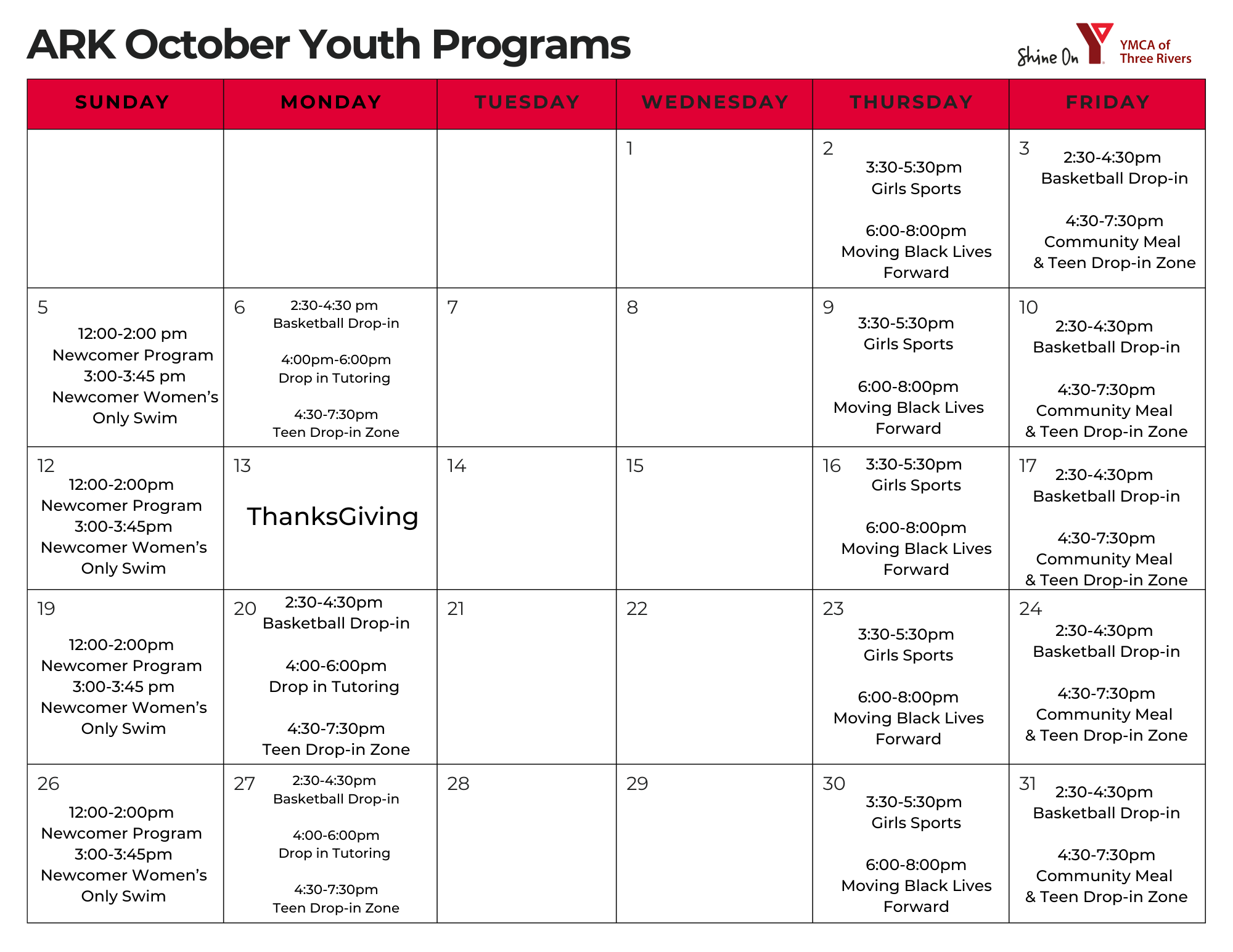 We have a variety of Youth Programs across our Three Rivers' communities. Take a look at our program availability on the schedules below to see what's happening at your Y.